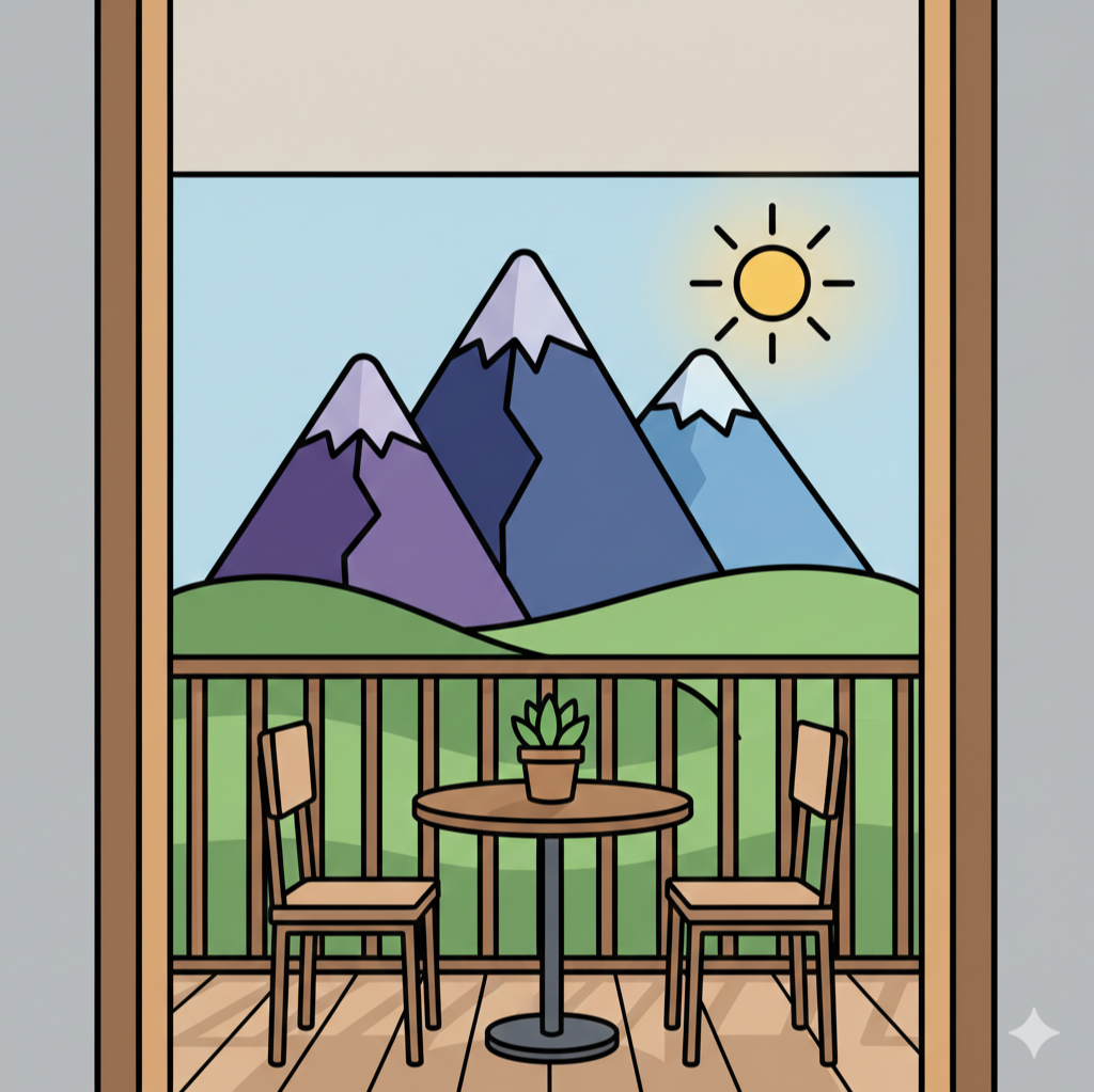 Balcon avec vue sur les montagnes